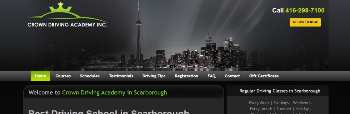 Crown Driving Academy Inc. is a trusted driving school in Scarborough, Ontario, dedicated to helping new and experienced drivers gain the skills and confidence needed to drive safely and responsibly. With over 25 years of experience, we offer Ministry-approved driver education programs, including beginner driver training, G2 and G road test preparation, and defensive driving courses. Our certified instructors provide personalised, one-on-one lessons using modern dual-control vehicles, ensuring a safe and supportive learning environment. Whether through flexible online classes or in-car sessions, Crown Driving Academy is committed to making your path to becoming a licensed driver smooth, enjoyable, and successful.