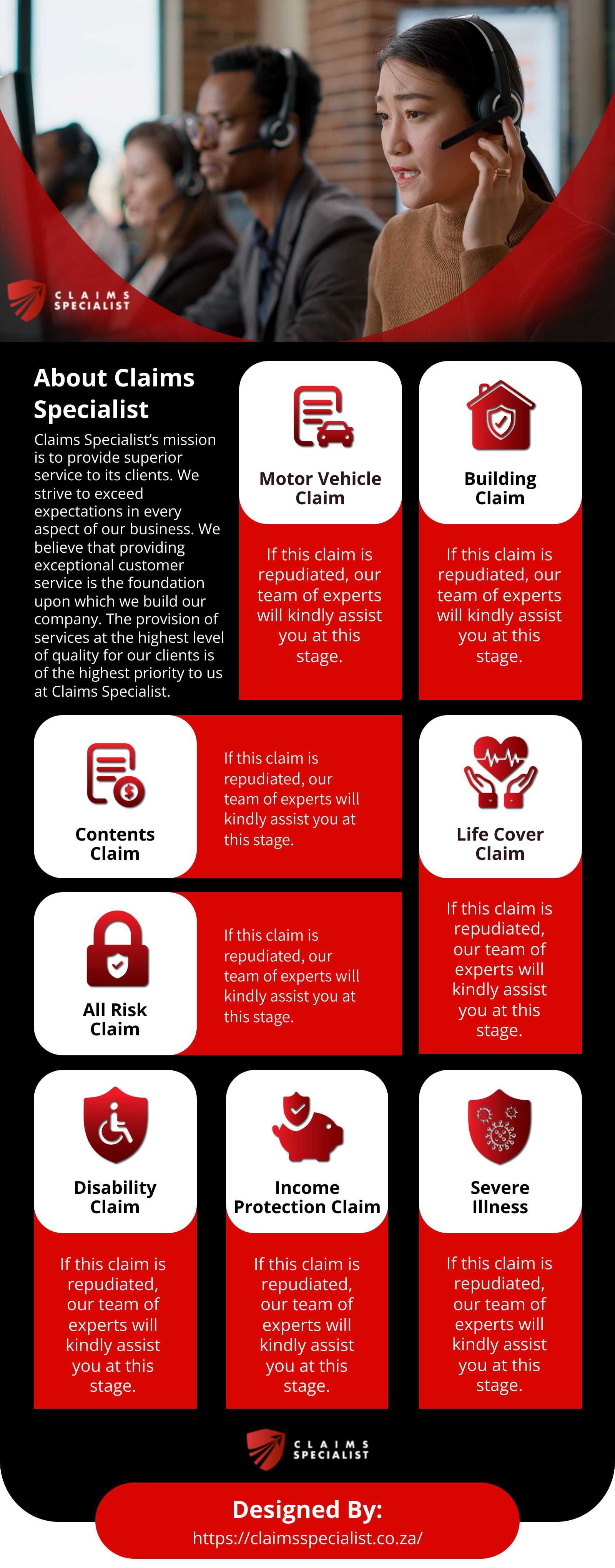 We at Claims Specialist provide you with the support to fight your claim, during the repudiation of claims process. Working with an Independent Insurance Claim Specialist allows the claim process to progress swiftly and smoothly, giving you confidence that your claim will be handled correctly. Becoming a member of Claims Specialist ensures that the handling of your insurance claims on your behalf saves time, stress, and ultimately lets you concentrate on your day-to-day life. Claims Specialist only helps at the point of Repudiation.