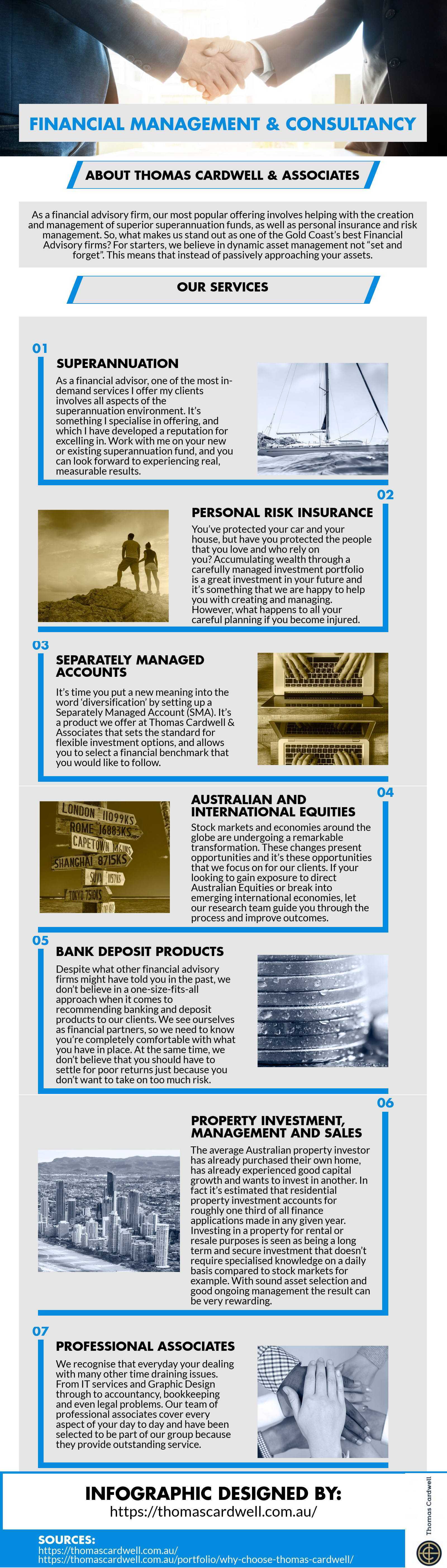 Planning ahead for retirement is one the biggest favours you can do yourself. Nobody wants to spend their latter years worrying about getting by, especially after a lifetime of hard work and taxes. Expert financial services like those provided by Thomas Cardwell Associates can help relieve the stress of long-term financial planning. Australian employers have been required by law to contribute no less than 9.5% of employees’ earnings towards superannuation funds since 2014. Investment advice from a dedicated Gold Coast financial firm can help you make the most of this legislation. Visit our southern offices at The Exchange, 3, 35 Township Drive, Burleigh, Gold Coast.