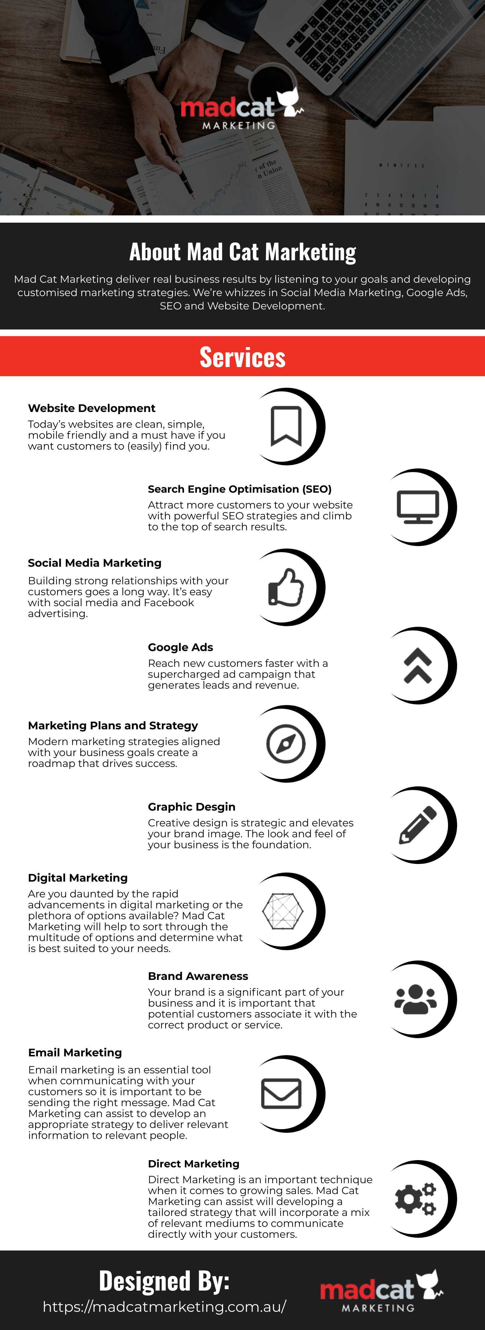 Mad Cat Marketing is a digital marketing agency delivering real business results by listening to your goals and developing customised marketing strategies. They’re whizzes in Social Media Marketing, Google Ads, SEO and Website Development. Just ask them. If your business is looking for more customers and more sales, then stop muddling through your marketing and talk to the professionals.