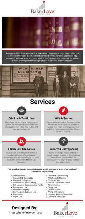 Founded in 1875, Newcastle law firm Baker Love Lawyers is proud of its record as one of the Hunter Region’s oldest and most trusted law firms. Whether you require help navigating a divorce, want to contest a will or need property and conveyancing advice, Baker Love are your team of legal experts in personal and business law.