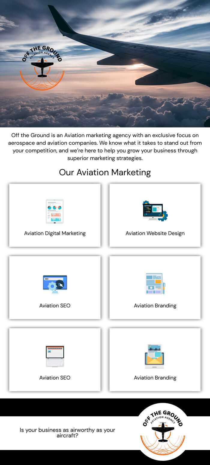 Off the Ground is a marketing agency with an exclusive focus on aerospace and aviation companies. We know what it takes to stand out from your competition, and we’re here to help you grow your business through superior marketing strategies.