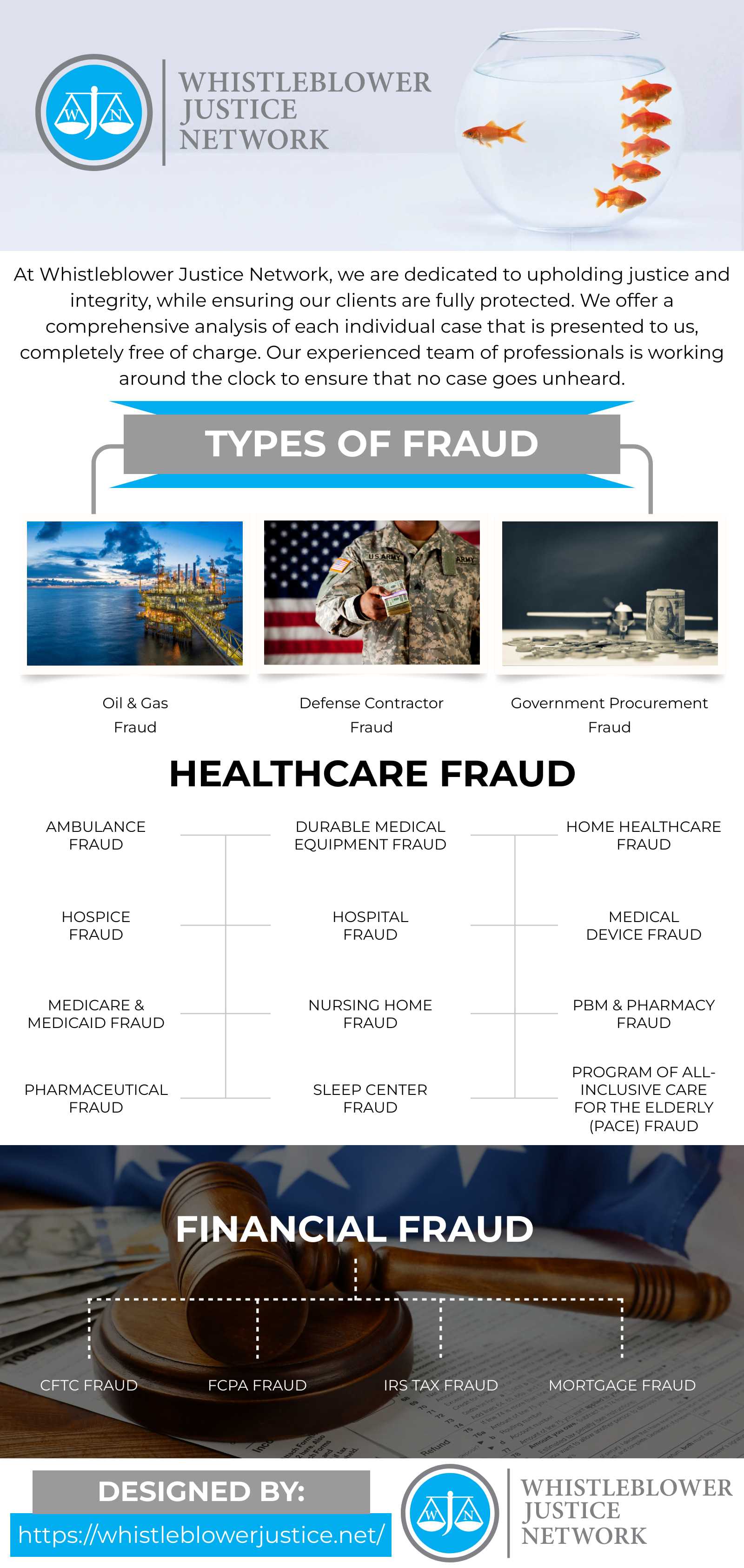 Whistleblower Justice Network has over 20 years of experience in analyzing, filing, and consulting on dozens of whistleblower actions. Combating fraud in areas such as Tax Fraud, Healthcare Fraud, FCPA Fraud, Securities Fraud, Government Procurement Fraud and many others; we prove an expertise on the path of the whistleblower.