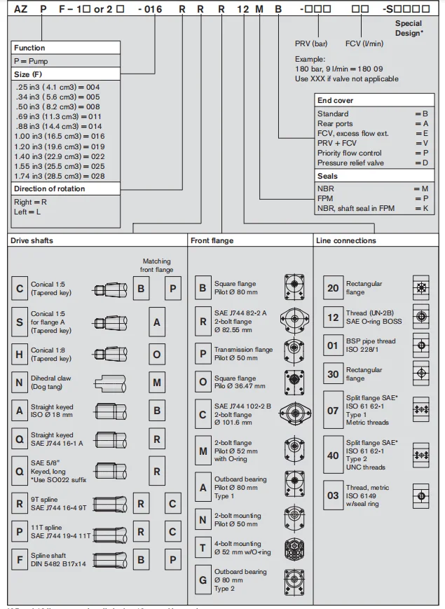 * Pumps with threaded ports may experience reduced life if used continuously above 210 bar. | |||||||||||||